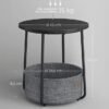 VASAGLE Mesa Auxiliar, Mesa Lateral Redonda con Cesta de Tela, Espaciosa, para Salón, Dormitorio, Mesita de Noche, Estilo Moderno, Negro Ébano y Gris Pizarra LET223B01 Espacios reducidos: Esta mesa de 45 x 50 cm (Diámetro x Alto) y la cesta de 39,6 x 18,2 cm (Diámetro x Alto) son ideales para espacios reducidos y proporcionan espacio adicional