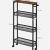 VASAGLE Carro de 4 Niveles, Carro Estrecho de Cocina con Ruedas, con Asa, para Espacio Reducido, 13 x 45,4 x 77 cm, para Cocina, Baño, Salón,Estudio, Marrón Rústico y Negro LRC032B01V1