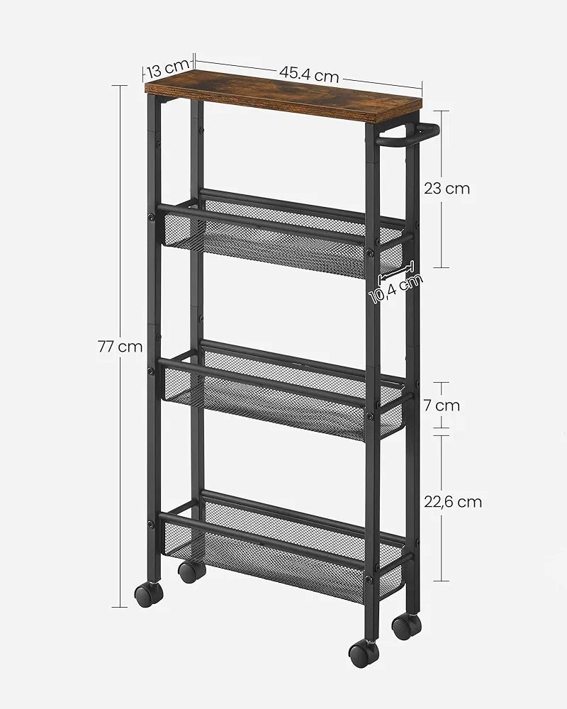 [Perfecto para espacios estrechos] Este carro compacto con la profundidad de 13 cm es ideal para espacios estrechos. Permite aprovechar al máximo los espacios reducidos de la cocina, el baño, el estudio, el salón y el dormitorio y maximizar la organización