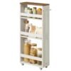 VASAGLE Carrito de Almacenaje Delgado de 4 Niveles, Estante de Cocina con Ruedas, con Asa, Espacio Pequeño, 15 x 43,2 x 86,5 cm, Baño, Lavandería, Blanco Rústico y Marrón Miel LRC050K01 Estantes regulables: La altura superior se puede ajustar entre 18 y 21 cm, y la inferior entre 28,5 y 35 cm, ideal para guardar grandes botes de detergente o utensilios de cocina altos