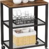 VASAGLE Carro de Servicio de 3 Niveles Vintage, Carro Cajonera Rústica, Estante de Almacenamiento Resistente, con Bandeja de Madera, Ruedas, para Cocina y salón, Vintage LRC78X