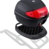 Gran capacidad de 38 L: La caja trasera para motocicleta de 38 L ofrece suficiente espacio para un casco integral, una mochila pequeña, guantes, un paraguas y ropa para la lluvia, ideal para desplazamientos diarios o viajes de corta distancia. Viene con un robusto candado de seguridad de aleación de zinc para protección adicional contra robo