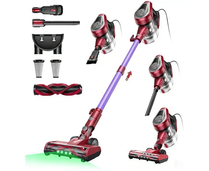 Vexilar Aspiradora con Cable C8, 60KPa Aspiradora con 7 Metros de Cable, 1,5L Depósito de Polvo, Diseño Elegante, 3-en-1 Aspirador Vertical, Aspirador para Suelos/Alfombras/Pelos/Coche La iluminación LED verde de la aspiradora C8 ilumina con precisión el polvo y residuos ocultos, eliminando cualquier rincón ciego de un vistazo y logrando una limpieza más profunda