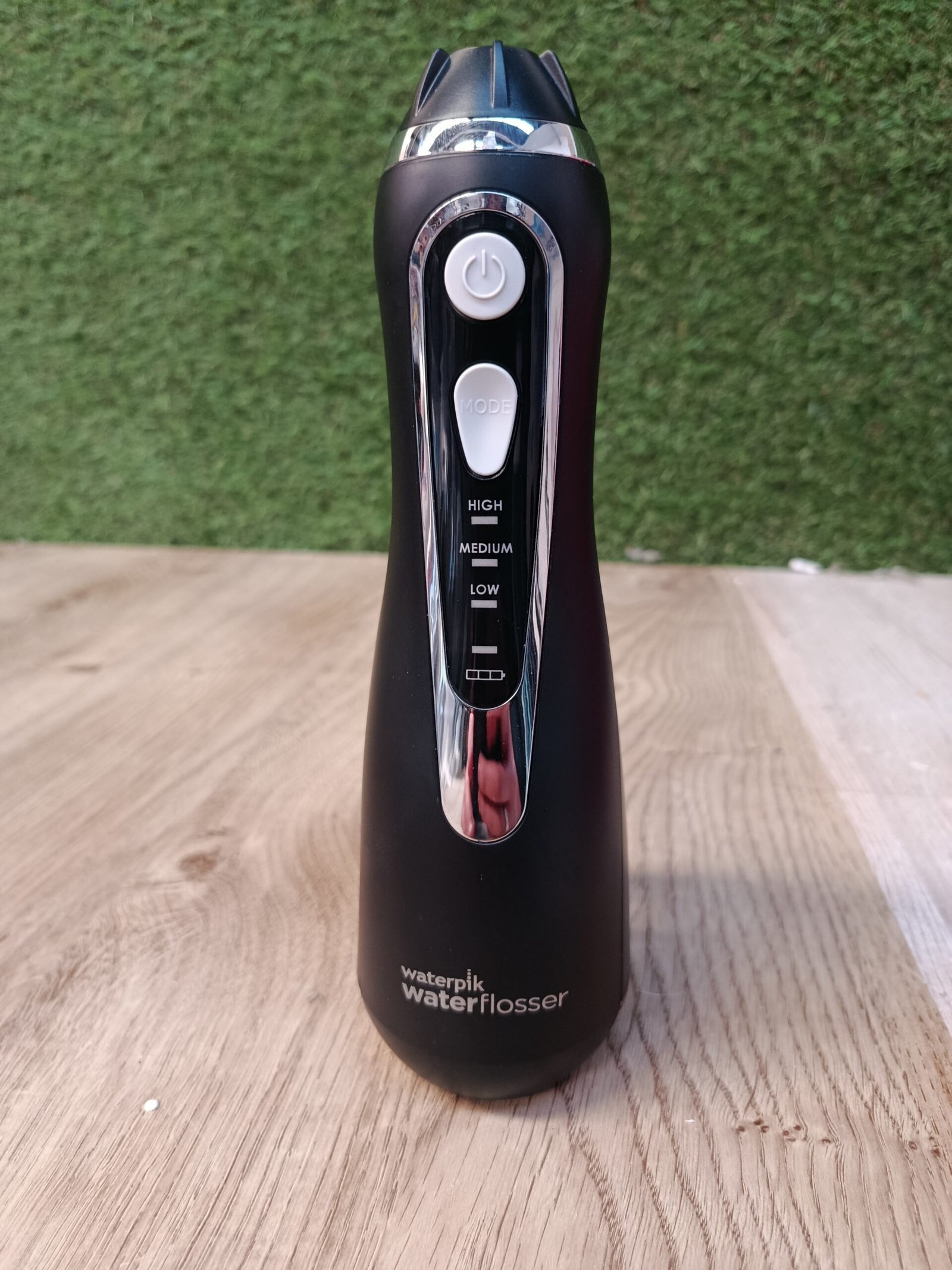 Waterpik Irrigador Dental Eléctrico con 3 Posiciones de Control del Agua a Presión con Cargador USB, Eliminación de Placa Dental óptimo para Viajar y para Baños Pequeños, Negro (WP-582EU)