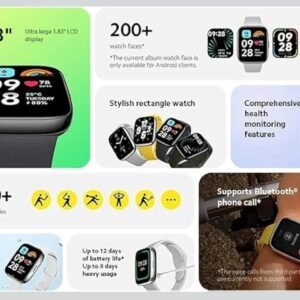 XIAOMI Redmi Watch 3 Active – Llamadas Bluetooth, Pantalla LCD de 1,83”, Monitor de frecuencia cardíaca, +100 Modos Deportivos, hasta 12 días de autonomía, Gris