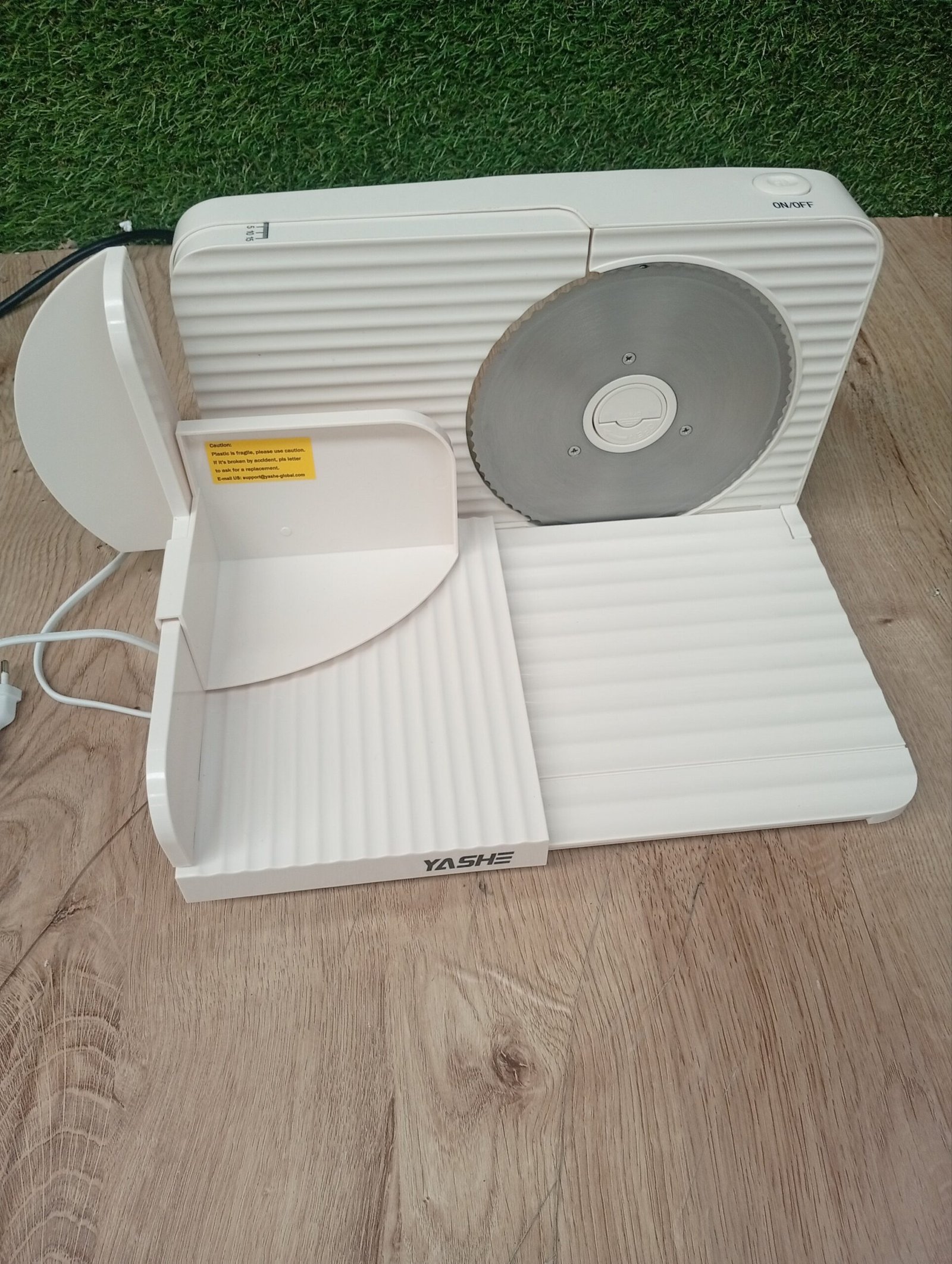 Diseño Compacto y Plegable:Esta cortadora de fiambre se pliega fácilmente para un almacenamiento rápido, reduciendo el espacio ocupado en la encimera. Ideal para cocinas pequeñas que necesitan una máquina de cortar fiambre práctica y eficiente