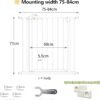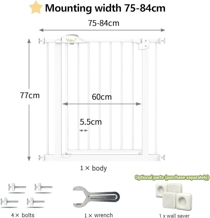 Ycozy Barrera Seguridad Niños para Escalera Puerta de Seguridad Bebé Extensibles Puertas para Perros y Niños Auto Close Metálica Vallas para Interiores y Exteriores, Altura 77 cm Ancho 65-74cm